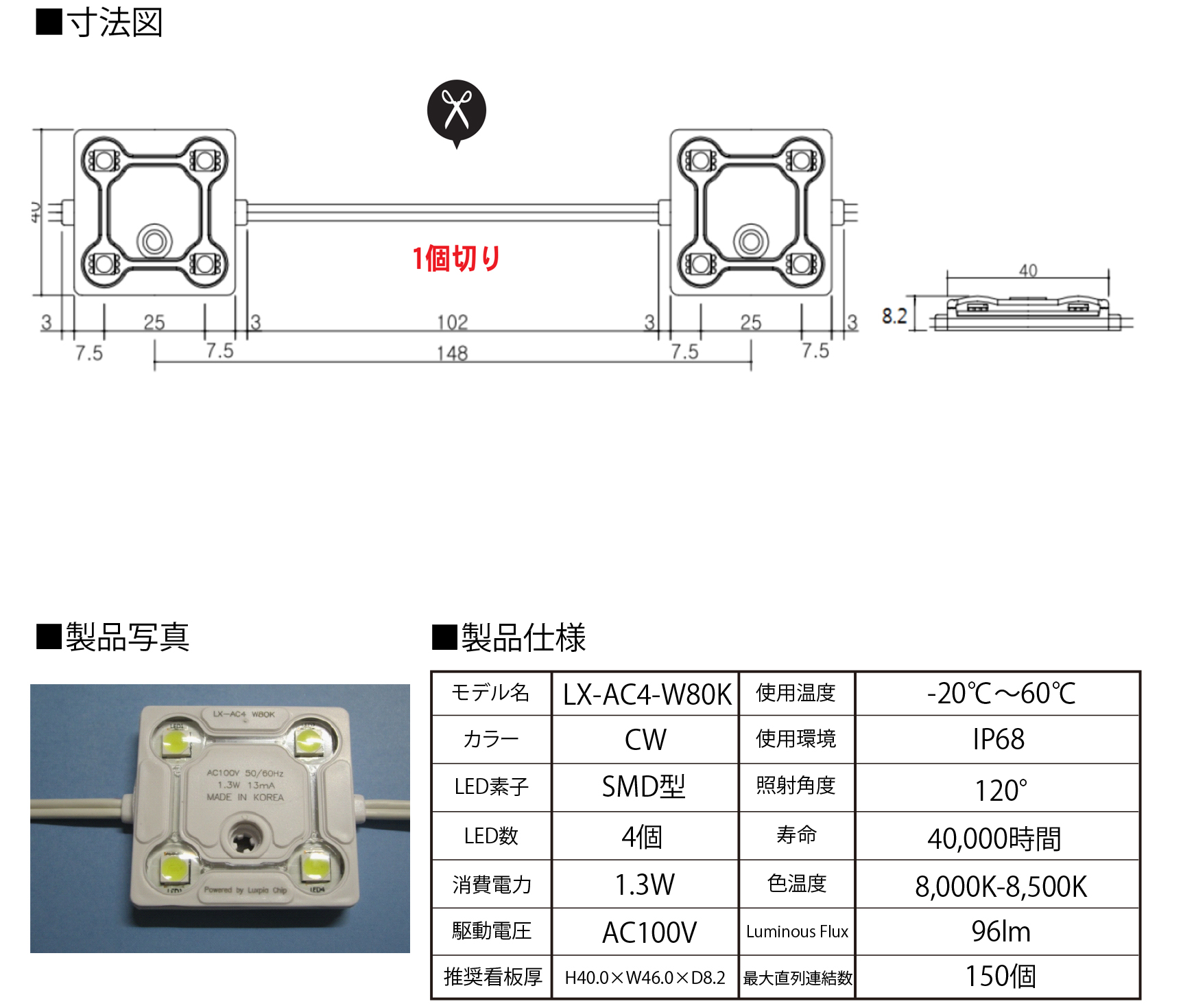 100V高品質LEDモジュール